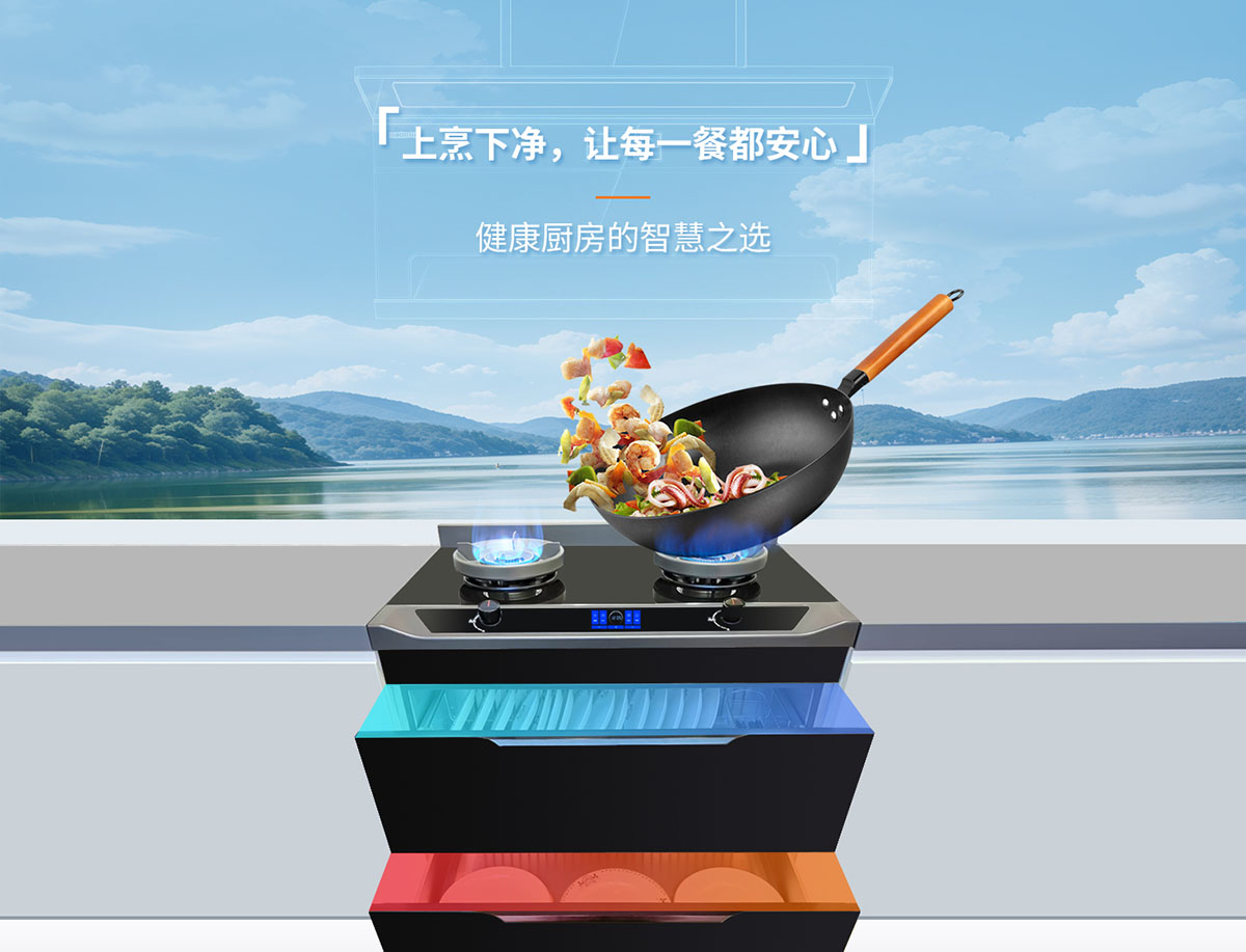 產(chǎn)品型號(hào):烹飪中心P10(大雙抽消灶款)產(chǎn)品名稱:集成烹飪中心(消+灶款)