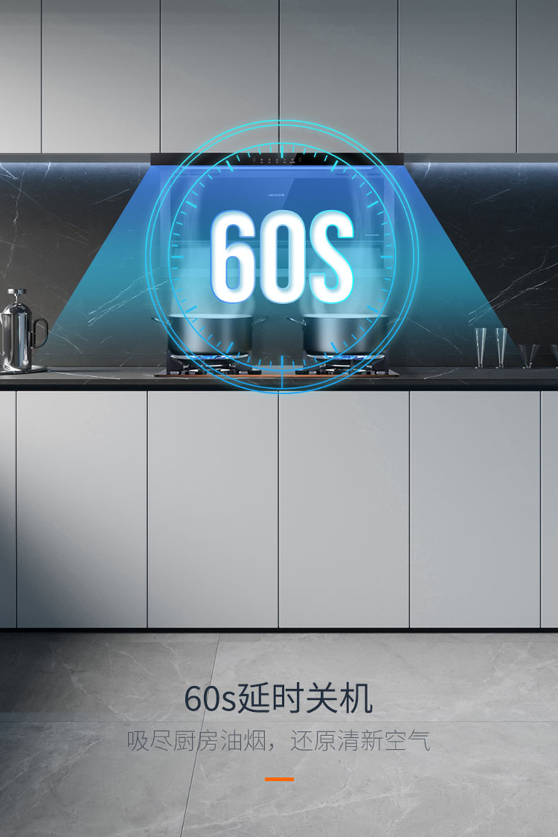 - 60s延時關(guān)機吸盡剩余油煙,吸盡廚房雜味,還原清新空氣