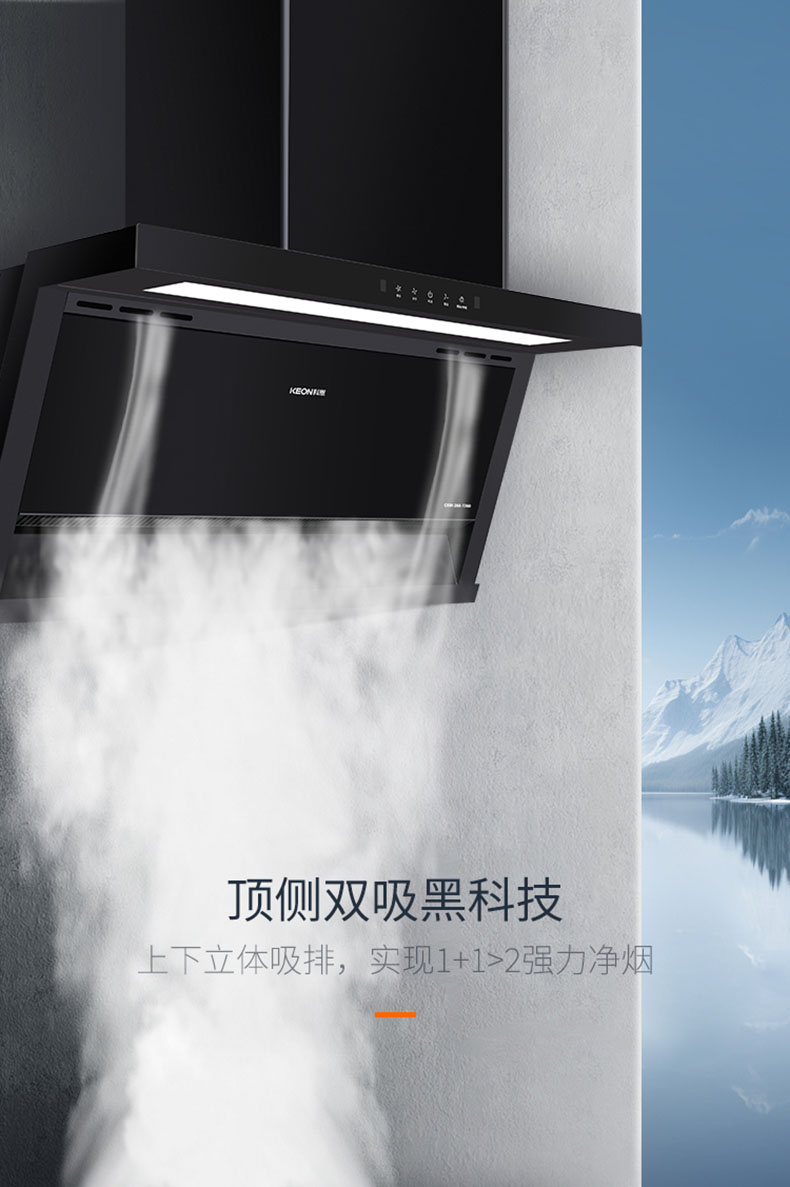 - 頂側(cè)雙吸黑科技,實現(xiàn)1+1>2強力凈煙