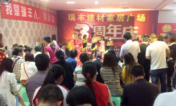 5月31日,位于貴州普定的瑞豐建材舉行了盛大的三周年慶典活動(dòng)。本次周年慶,瑞豐建材全場(chǎng)商家共同參與,各種大獎(jiǎng)全力鉅獻(xiàn),現(xiàn)場(chǎng)人潮涌動(dòng),熱鬧非凡。